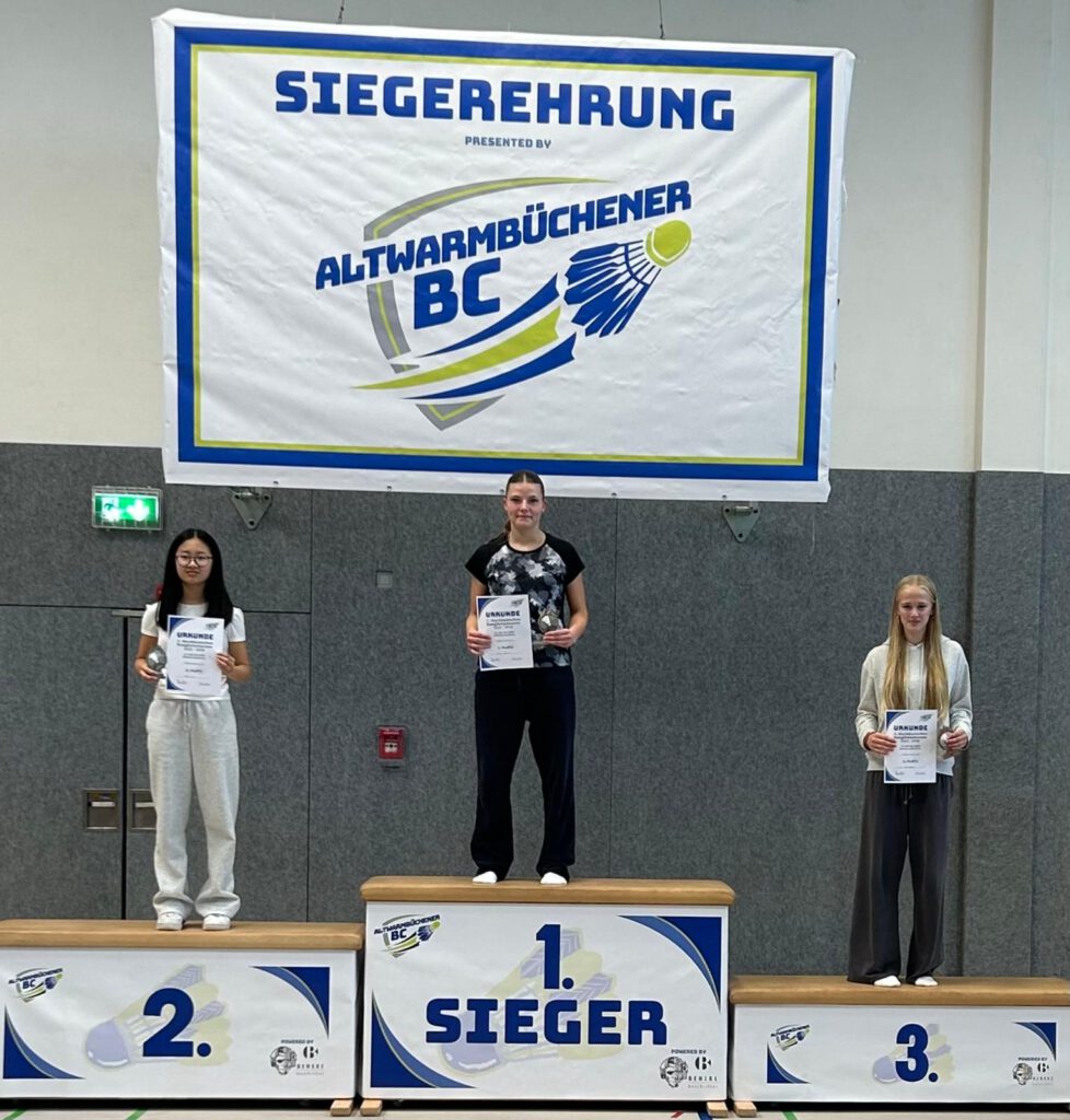 Einen weiteren Turniersieg holte Annelie Tonner im Mädchendoppel U13. Mit Partnerin Ashley Pieper (PSV Bremen) spielte sie ein souveränes Turnier und siegte im Finale über die Mitfavoriten Livia Malin Krüger/Gabi Zhang aus Gittersee deutlich mit 21:9 und 21:15. Im Mädcheneinzel U13 erreichte Annelie das Viertelfinale.