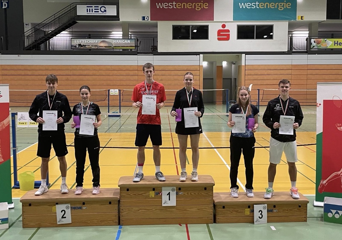 Gleich vier weitere dritte Plätze gab es in dieser Altersklasse. Hannah Stegemann im Mädcheneinzel und im Mixed gemeinsam mit Partner Selmedin Gorcevic (1. BV Mülheim) sowie Annelie Tonner mit Partner Jinmo Zheng (BC Phönix Hövelhof) und Erik Leinhos im Jungendoppel mit Partner Joscha Freistühler (TSV Heimaterde MH). Annelie Tonner kam im Mädcheneinzel bis ins Viertelfinale und Tillmann Schult/Aliya Höning erreichten im Mixed die zweite Runde.