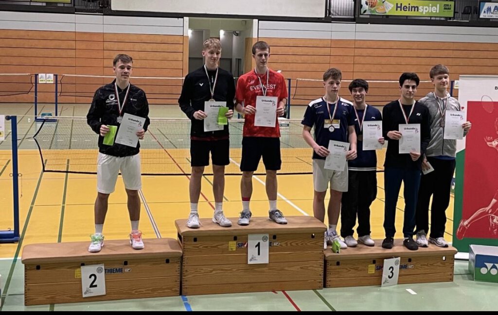 Zweimal auf den Dritten Platz konnte sich Felix Sargin in der Altersklasse U17 spielen. Im Jungendoppel mit Alexander Franzke (BC Phönix Hövelhof) musste er sich erst im Halbfinale Nils Barion/Jari Hannes (TV Refrath/1. BC Beuel) geschlagen geben. Und auch im Mixed mit Vereinskameradin Clara Storck war erst im Halbfinale gegen die späteren Titelträger Alexander Franzke/Franziska Marie Drees (BC Phönix Hövelhof/SV Lippramsdorf) Schluss. Im Jungeneinzel kam Felix bis ins Viertelfinale, ebenso wie Unionist Konstantin Tonner, den auch im Jungendoppel U17 mit Alexander Mentzel (STC BW Solingen) das Aus im Viertelfinale ereilte.