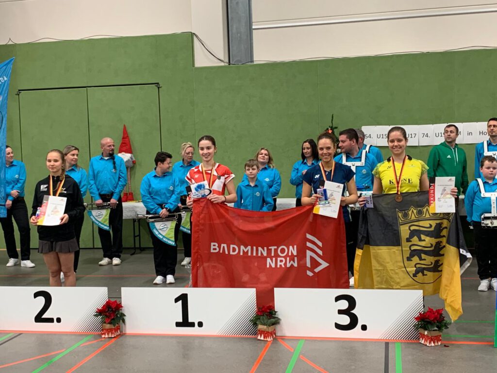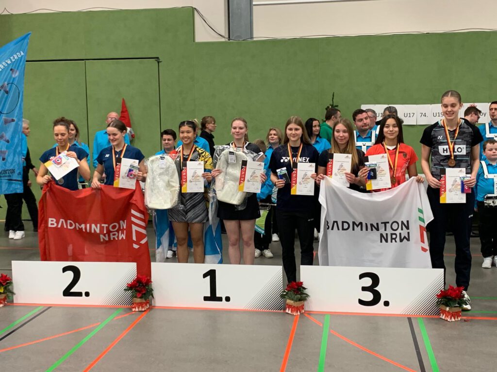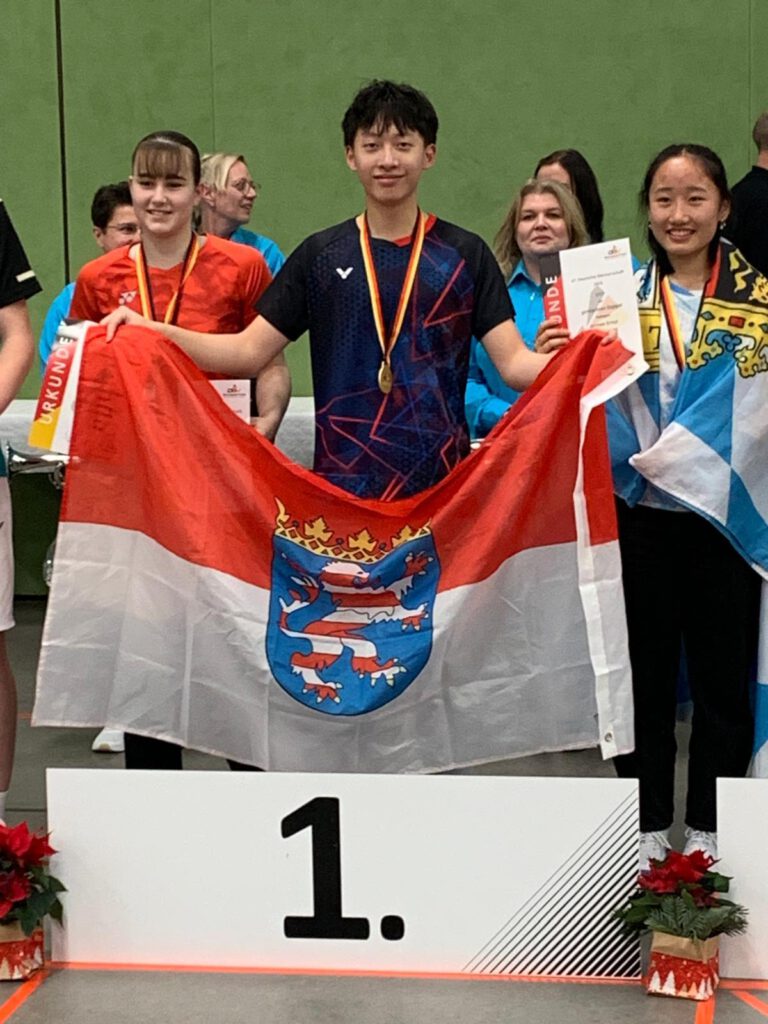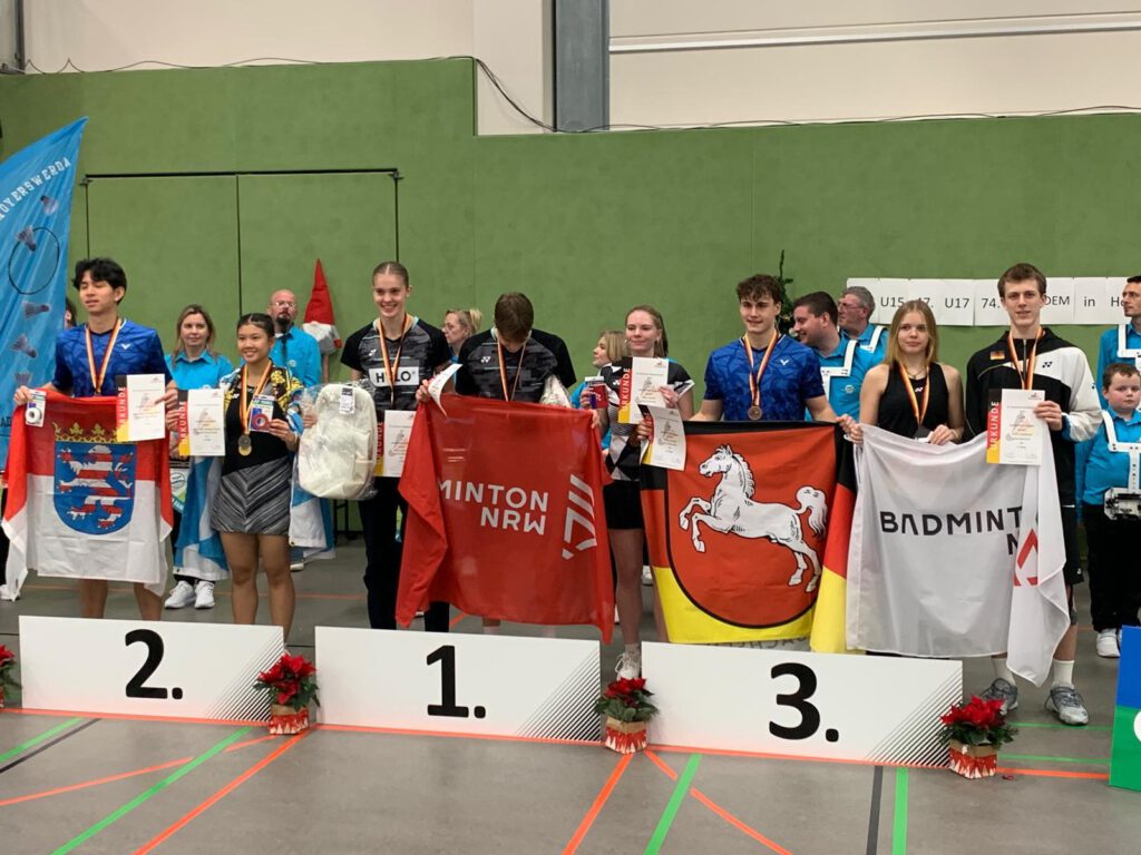 Julika Block kürte sich in diesem Jahr zur erfolgreichsten Spielerin, konnte sie sich, da in allen drei Disziplinen startend, gleich drei Mal aufs Podest spielen und so einen kompletten Medaillensatz abholen. Mit Felix Jianheng Luo (1. BV Maintal) im Mixed U17 von Setzposition drei gestartet, blieb sie im gesamten Turnierverlauf ohne Satzverlust und auch im Finale gegen Cedric Pascher/Monique Schütt (PTSV Wuppertal/Horner TV) siegte das Duo souverän mit 21:18 und 21:16. Gold für Julika und Felix!