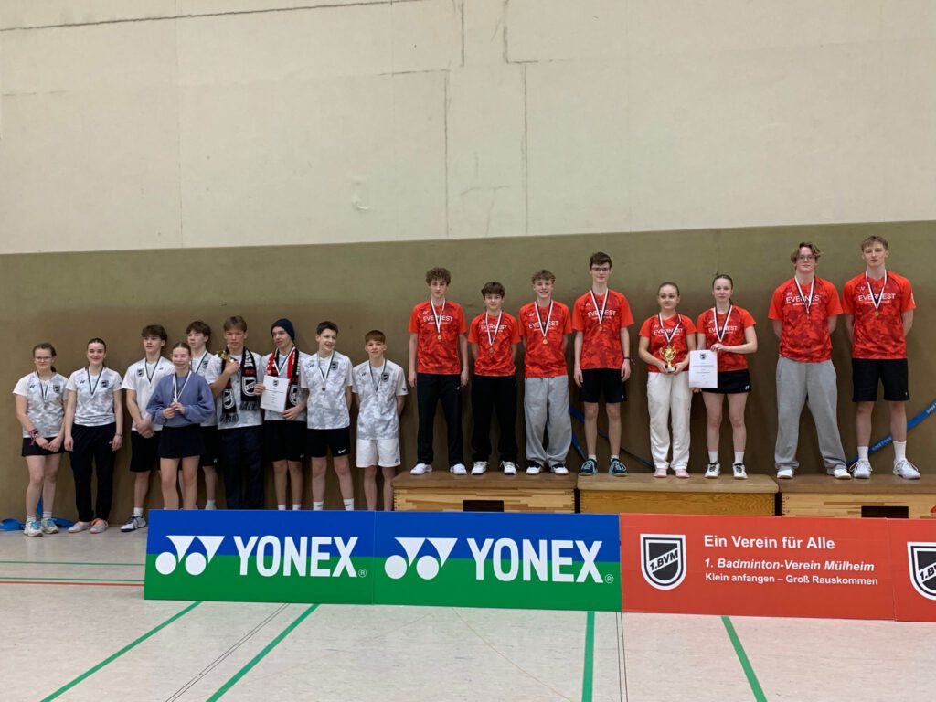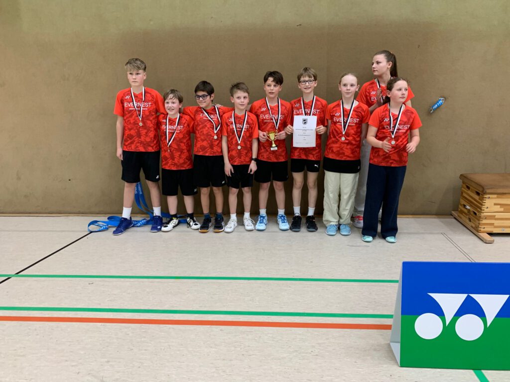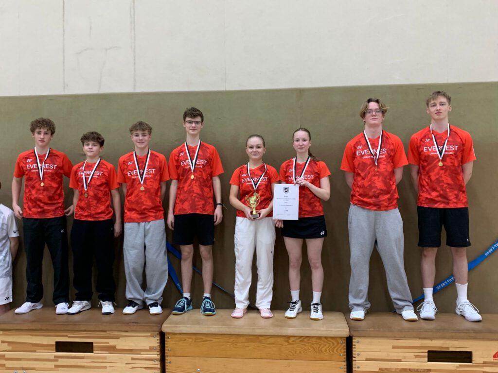 Im ersten Spiel der BMM gelang jedoch „nur“ ein Unentschieden gegen den BC Recklinghausen, so dass auch der anschließende Kantersieg gegen die 2. Jugendmannschaft des 1. BV Mülheim noch nicht für klare Verhältnisse sorgte. Denn nur die ersten zwei Teams sind für die „Westdeutschen“ qualifiziert. Ein möglichst hohes Ergebnis gegen die Erstvertretung vom 1. BV Mülheim musste her. Jedes gewonnene Spiel, sogar jeder Punkt konnte ausschlaggebend sein. Drei Spiele gegen den Favoriten mussten es mindestens sein, dass es sogar fünf wurden begeisterte nicht nur die Spieler und Spielerinnen sondern die ganze Abteilung und sorgte für ein kollektives Aufatmen. Bezirksmannschaftsmeister! Damit hatte man nicht gerechnet. Für Ole Schroth, Konstantin Tonner, Bela Bergmann, Christian Reiners, Piet Vorspohl, Max Bichmann bei den Jungen und Shreya Hochscheidt, Fiona Bergen und Aylia Vogt bei den Mädchen wurde der Einsatz belohnt. Gratulation!