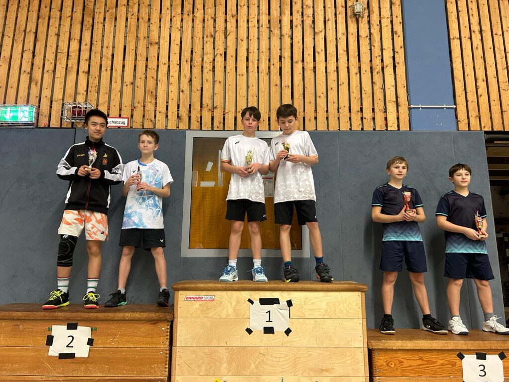 Gute Platzierungen, wenn auch die unglücklichen vierten Plätze holten Jakob Bergen/Yufan Wu (TV Olpe) im Jungendoppel U13 sowie Victor Dobrev im Jungeneinzel U13 und Bela Bergmann im Jungeneinzel U19.
